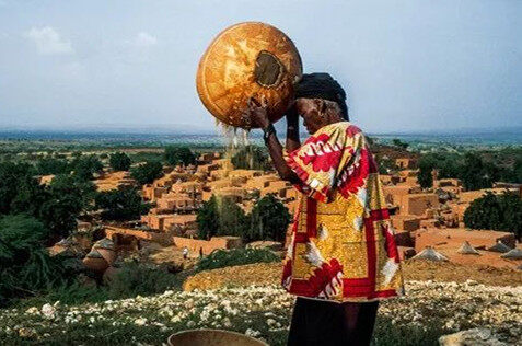我曾到一眼水井旁边,看到黑人妇女单独或结伴前来取水,照例都先喝上一顿,然后头顶着葫芦、水桶等兴高采烈而归。在提水的同时也往预制的一些水槽中灌满了水,这是为牛羊预备的。