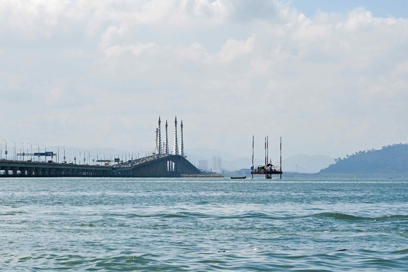 槟城275千伏跨海输电线路项目位于马来西亚槟城州,邻近槟城一桥及槟城港。项目拟新建一条9.5 km的275kV跨海输电线路,横跨槟城海峡,由大陆侧NEW PRAI发电厂向岛侧THE LIGHT变电站送电。项目合同模式为设计施工总承包,主要工作内容为输电线路结构及电气设计、输电线路基础施工、防撞墩及杆塔附属检修设施施工、杆塔采购及组立安装、电力线路设备材料采购、线路架设安装及调试。