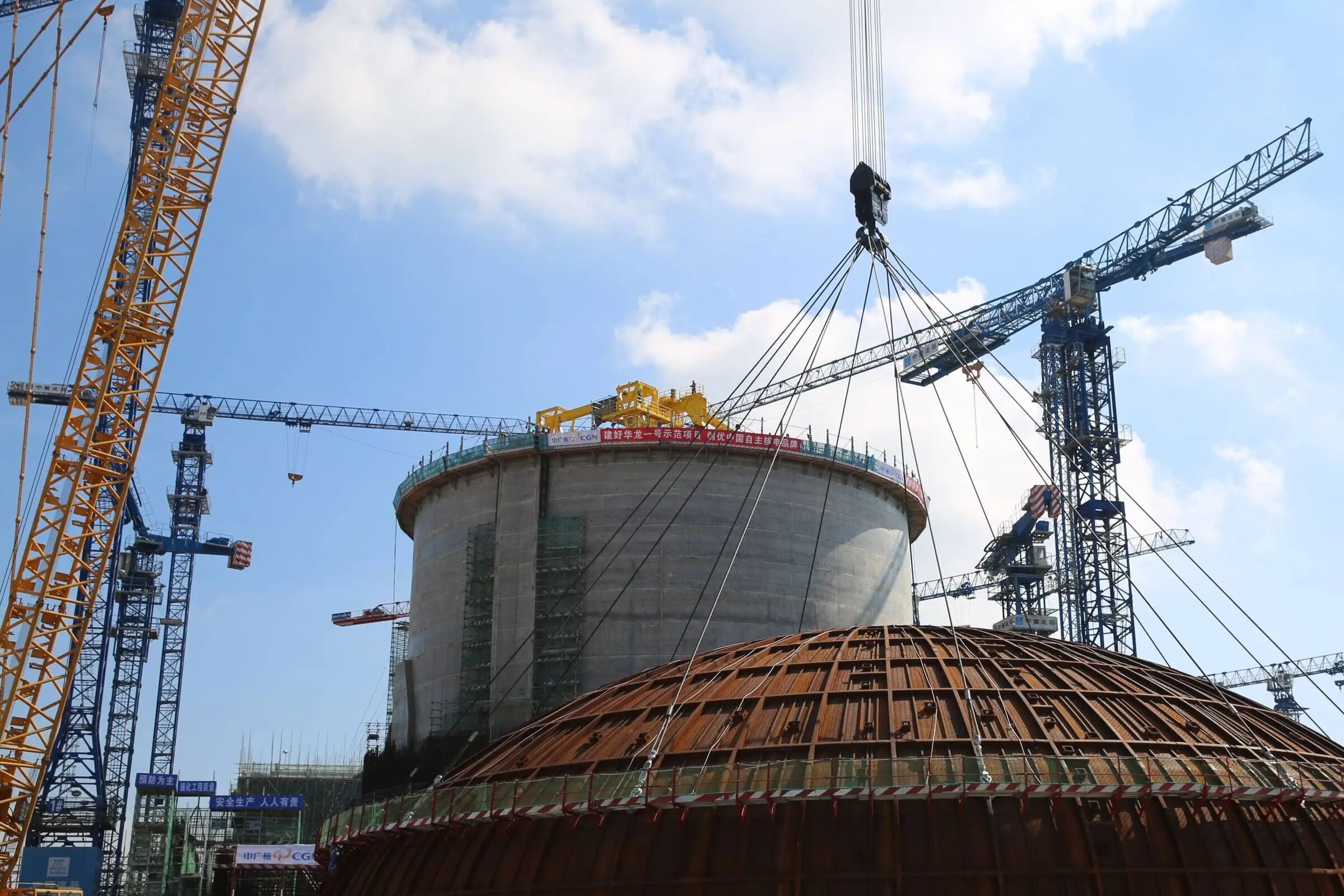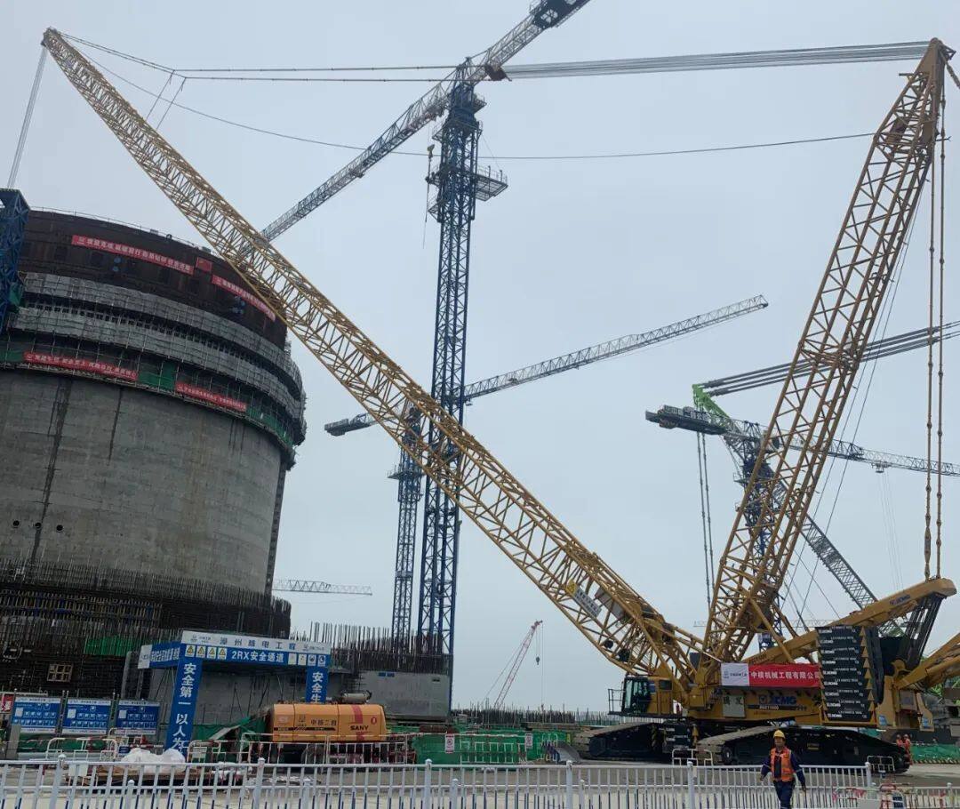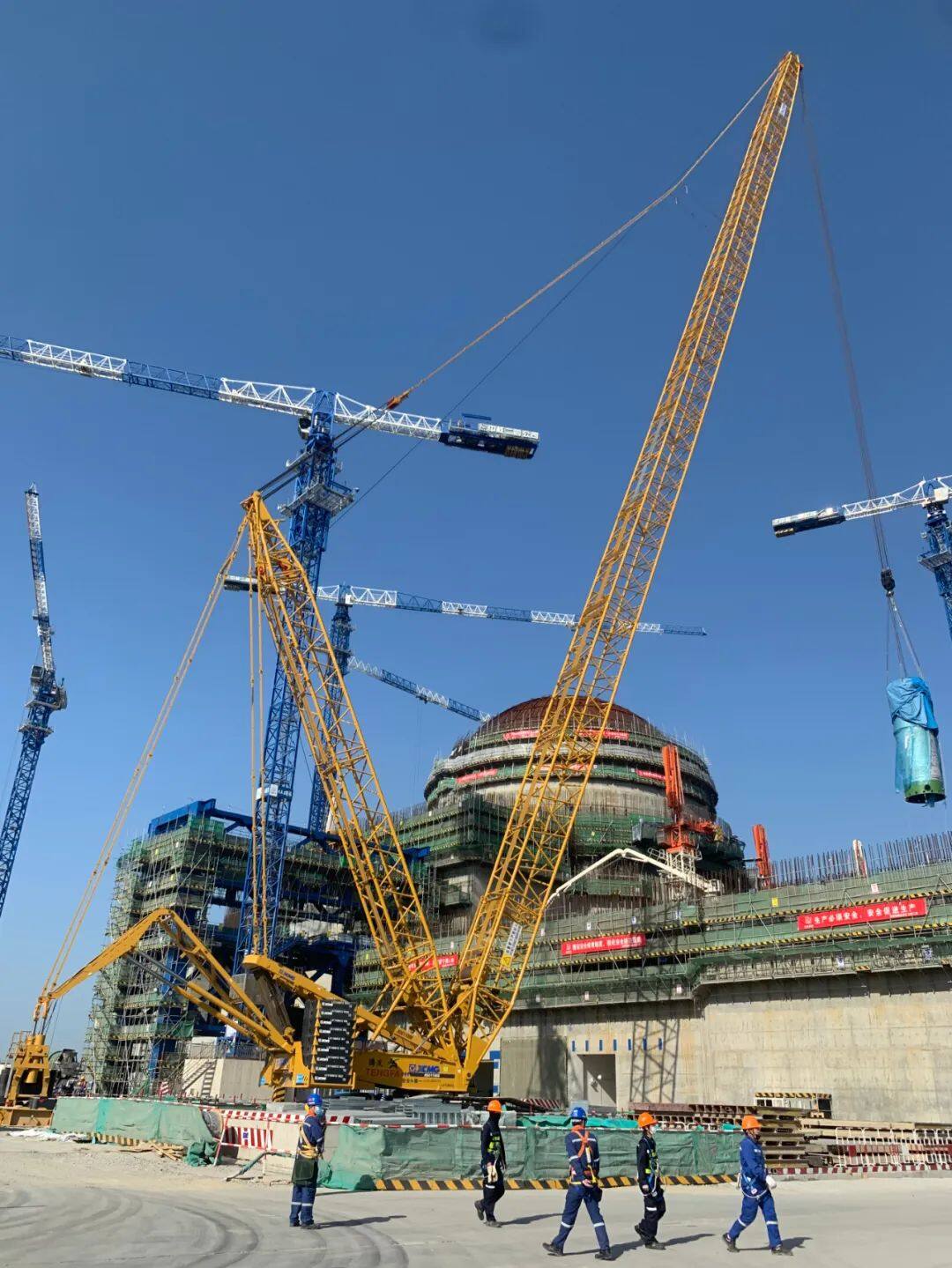 近日,有中国核电“国之名片”之称的“华龙一号”电机组建设再次提速,福建漳州核电2号机组12台换热器全部吊装就位,闪耀在现场的徐工XGC11000履带起重机,也为这张“名片”增添了一抹亮眼的金色。