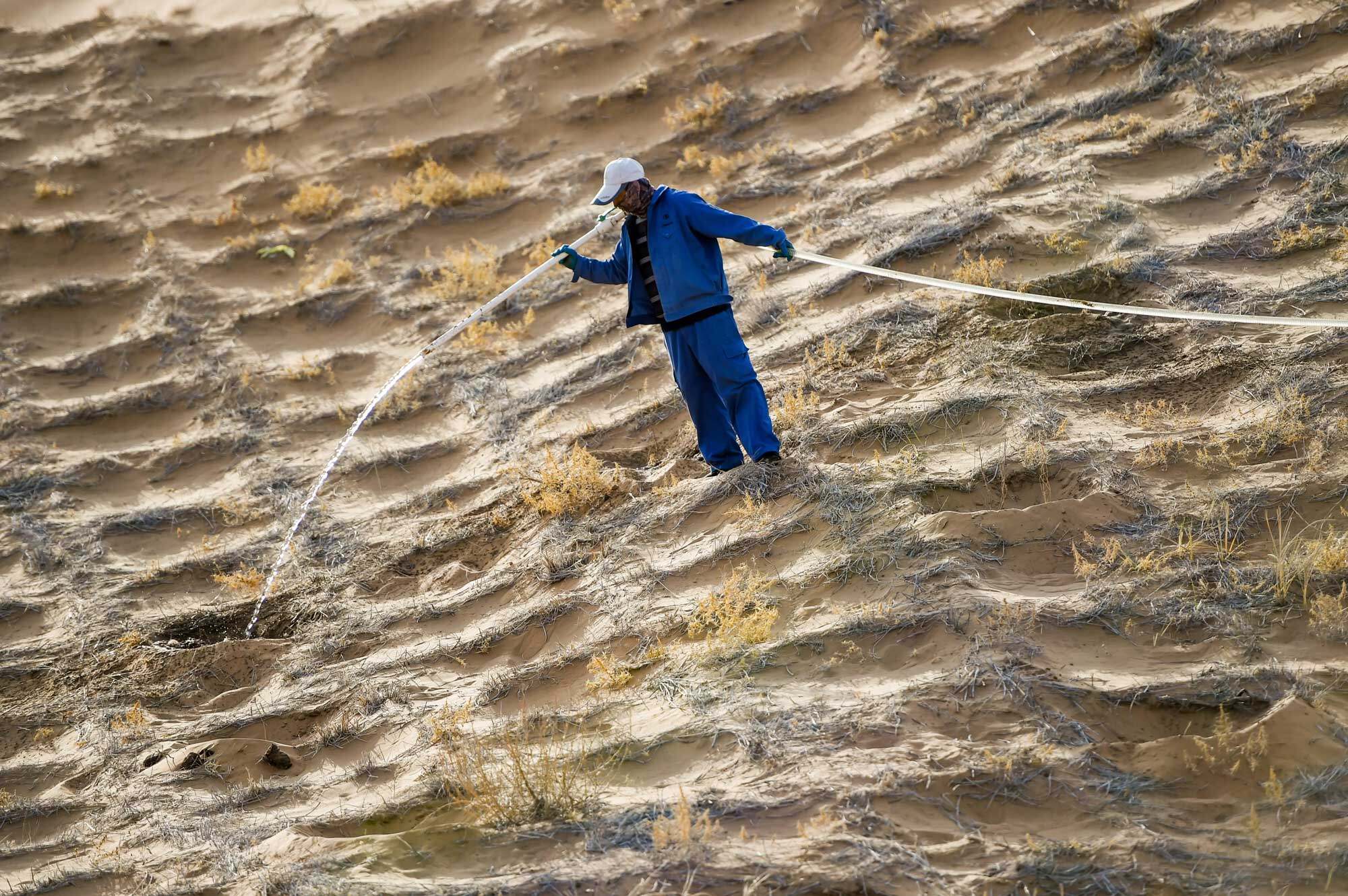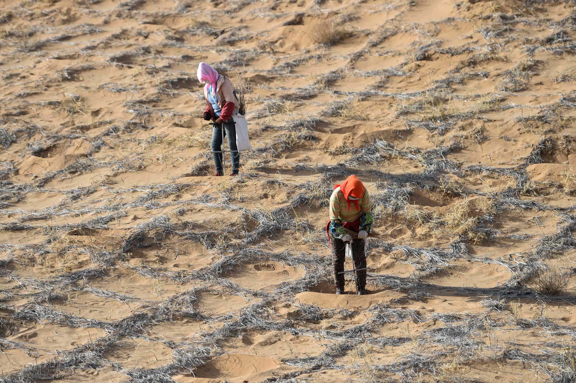 كانت الصين في يوم من الأيام واحدة من البلدان التي شهدت تصحرًا شديدًا في العالم ، ووفقًا لنتائج التعداد الوطني للصحراء وغوبي والتصحر ونتائج مسح التصحر ، تبلغ مساحة الأراضي المتصحرة في الصين 2.622 مليون كيلومتر مربع ، أي ما يمثل 27.4٪ من مساحة أراضي البلاد. ما يقرب من 400 مليون شخص يتأثرون بالتصحر. الأثر. وبحسب أبحاث مشاريع التعاون الدولي بين الصين والولايات المتحدة وكندا ، فإن الخسارة الاقتصادية المباشرة الناجمة عن التصحر في الصين تبلغ حوالي 54.1 مليار يوان.