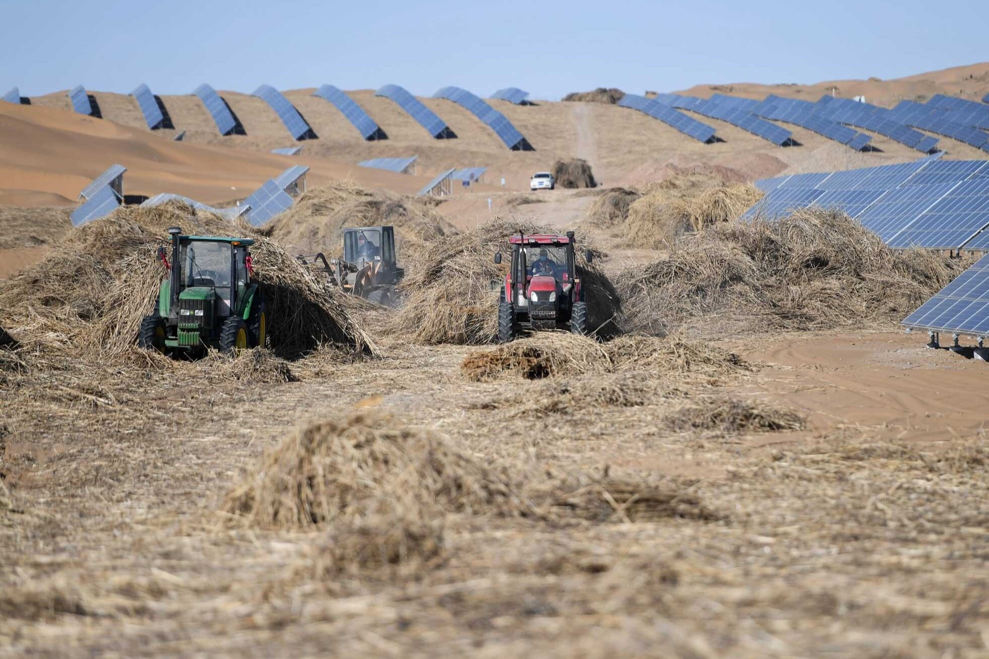 في Kubuqi ، هناك 3،180 ساعة من موارد أشعة الشمس الطبيعية سنويًا. وقد أدخلت الحكومة المحلية مؤسسات بيئية ، باستخدام الألواح الكهروضوئية ، وتوليد الطاقة على متن السفينة لإنتاج الطاقة الخضراء ، وزرع العشب بين الألواح لمنع الرياح والرمال ، وتطوير تربية الأحياء المائية تحت اللوحات ، والمفتاح هو أنها يمكن أن تجلب الدخل للأسر المحلية الفقيرة.