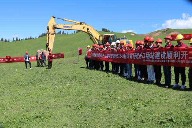 2022年6月18日,在现场机械的轰鸣声中,国道218线那拉提至巴仑台公路项目(以下简称“那巴项目”)第NBTZ-5标段建设再迎重要节点,场站位于新疆和静县巩乃斯镇的艾肯隧道进口临建工程正式开工,标志着艾肯隧道进出口正式进入双向大干热潮。