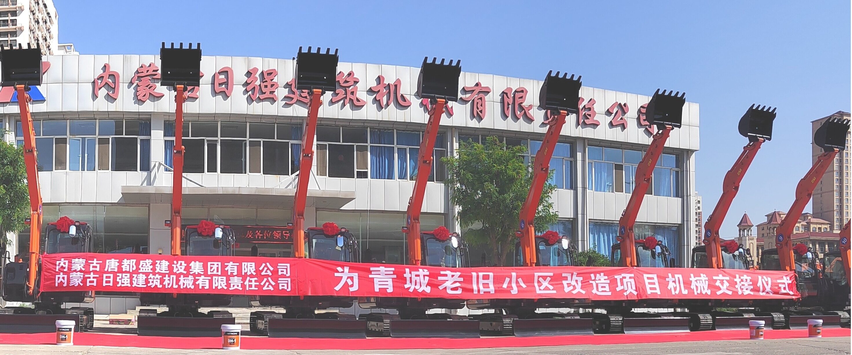 2022年6月10日,10台日立建机ZX60C-5A液压挖掘机在日立建机经销商——内蒙古日强建筑机械有限公司列阵待发,这是内蒙日强向战略合作伙伴——内蒙古唐都盛建设集团有限公司交付的首批设备。双方领导共同出席了此次交机仪式,10台ZX60C-5A将即刻投身客户重点业务,成为青城老旧小区改造项目的建设主力。