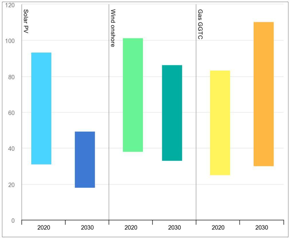 非洲不同发电资源的平准化能源成本
