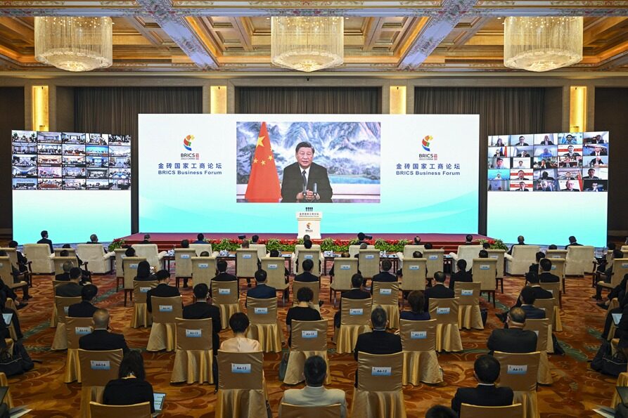 国家主席习近平以视频方式出席金砖国家工商论坛开幕式并发表题为《把握时代潮流 缔造光明未来》的主旨演讲。习近平指出,当前,世界百年变局和世纪疫情相互交织,各种安全挑战层出不穷,世界经济复苏步履维艰,全球发展遭遇严重挫折。世界向何处去?和平还是战争?发展还是衰退?开放还是封闭?合作还是对抗?是摆在我们面前的时代之问。
