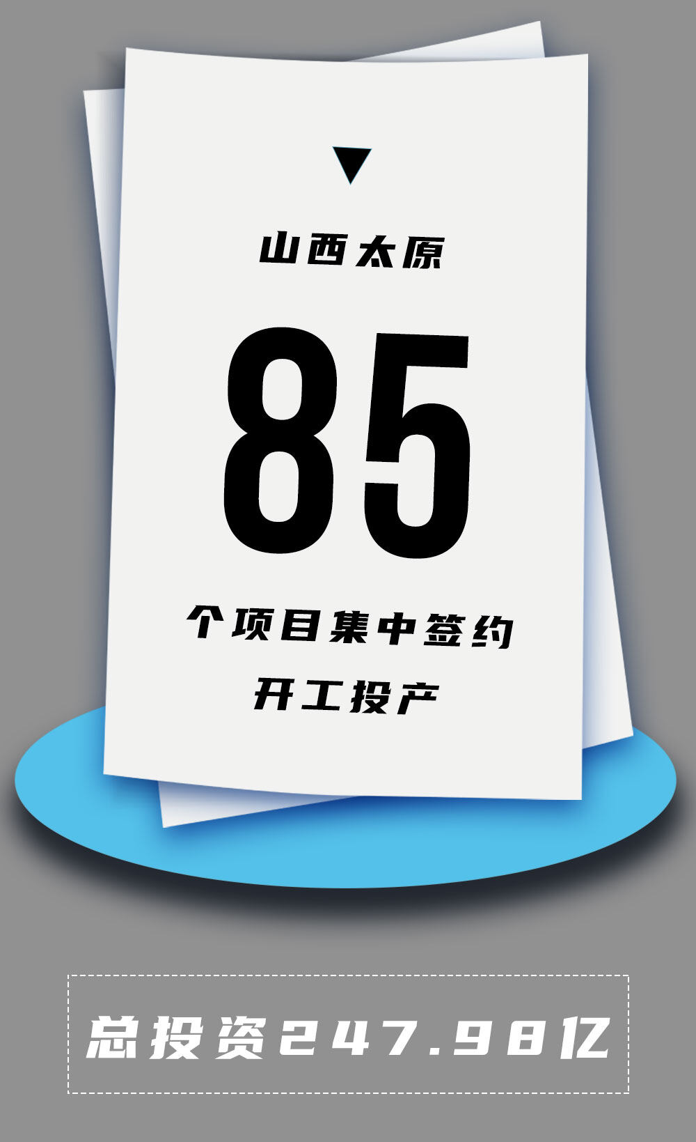 2022年6月22日,太原市与山西省同步举行开发区2022年第二次项目集中签约一批、开工一批、投产一批“三个一批”活动。据了解,太原市85个项目集中签约开工投产,总投资247.98亿元。在本次山西省开发区“三个一批”活动,太原市签约项目34个,总投资123.52亿元;开工项目37个,总投资92.19亿元;投产项目14个,总投资32.27亿元。