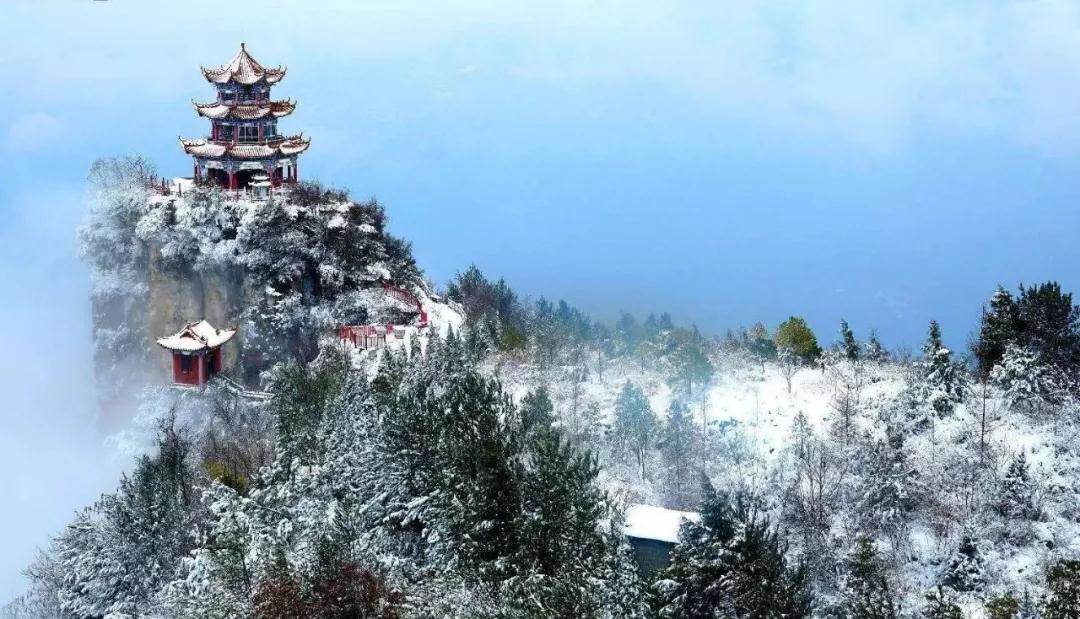相传千仞绝壁上建观,工匠们心惊胆寒,但每动工之际都会云雾弥漫,才让人没那么恐惧。
