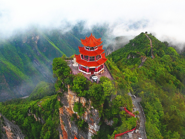 重庆巫溪云台寺以其天然形成的高、险、奇特著称于世。