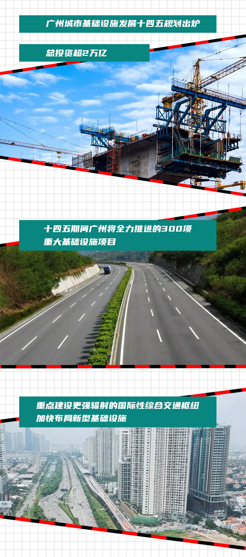 《规划》确定了未来5年广州基础设施的主要发展方向,并明确广州市“十四五”期间将全力推进的300项重大基础设施项目,总投资估算约20400亿元。