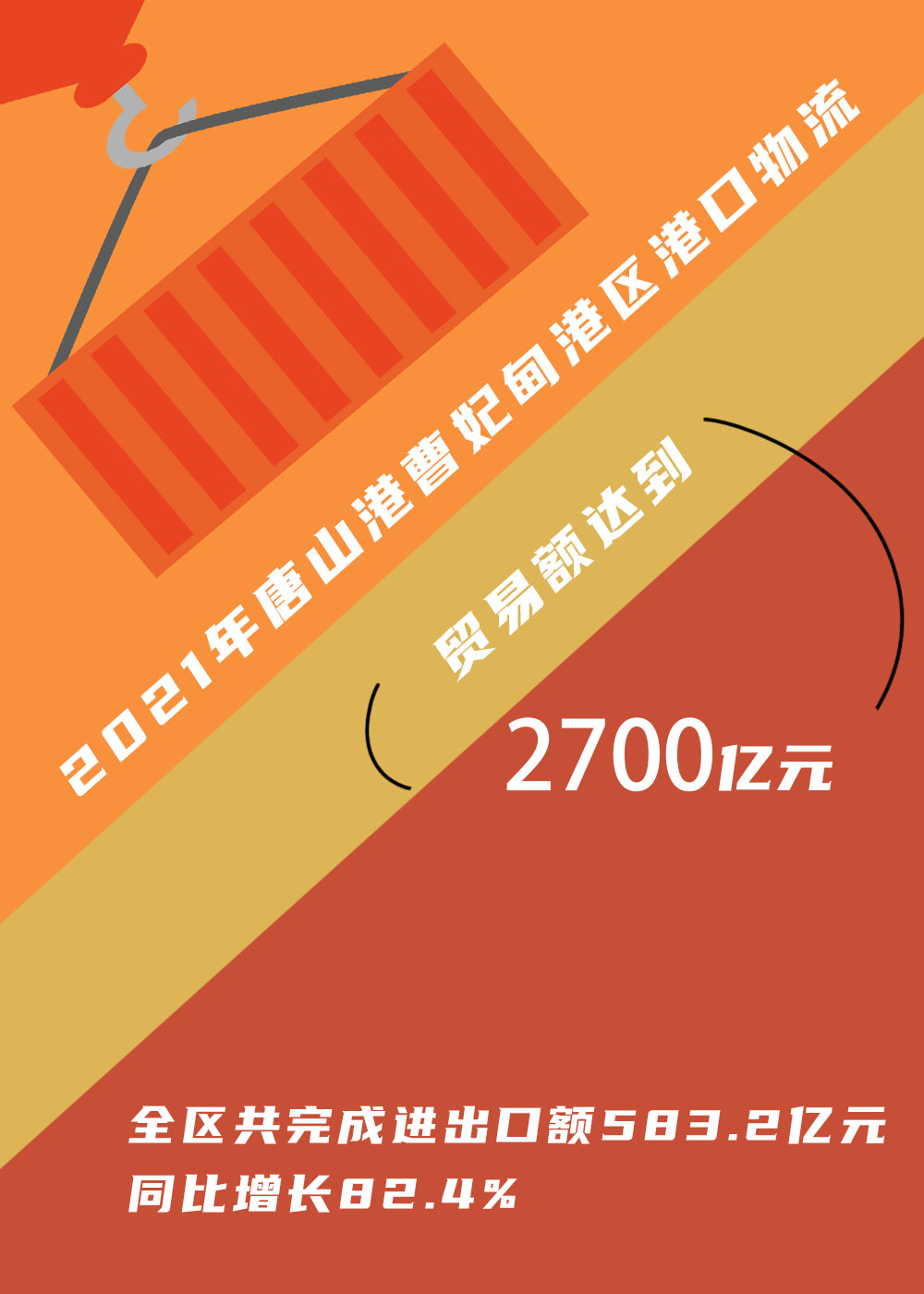 2021年,唐山港曹妃甸港区港口物流贸易额达到2700亿元,完成货物吞吐量4.48亿吨,集装箱吞吐量100万标箱,全区共完成进出口额583.2亿元,同比增长82.4%,占河北省进出口总量的1/9。(转载请注明见道网www.seetao.com)见道网工程栏目编辑/赵娥