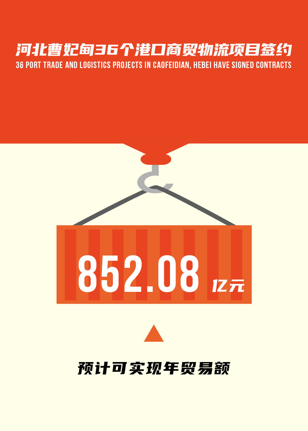 في 25 يونيو 2022 ، علم من منطقة Caofeidian ، Tangshan أن 36 مشروعًا صناعيًا لتجارة الموانئ ، بما في ذلك Zhongan Energy Renewable Resources الرئيسي ، Zhongshou Special Steel Trade ، و Pan-Ocean International Import and Export Trade ، تم توقيعها وتسويتها في منطقة Caofeidian يمكن أن تحقق حجم تجارة سنوي قدره 85.208 مليار يوان ، مما يشير إلى أن منطقة Caofeidian على بعد خطوة واحدة من هدف بناء قاعدة أعمال لوجستية وأعمال موانئ ذات تأثير دولي.