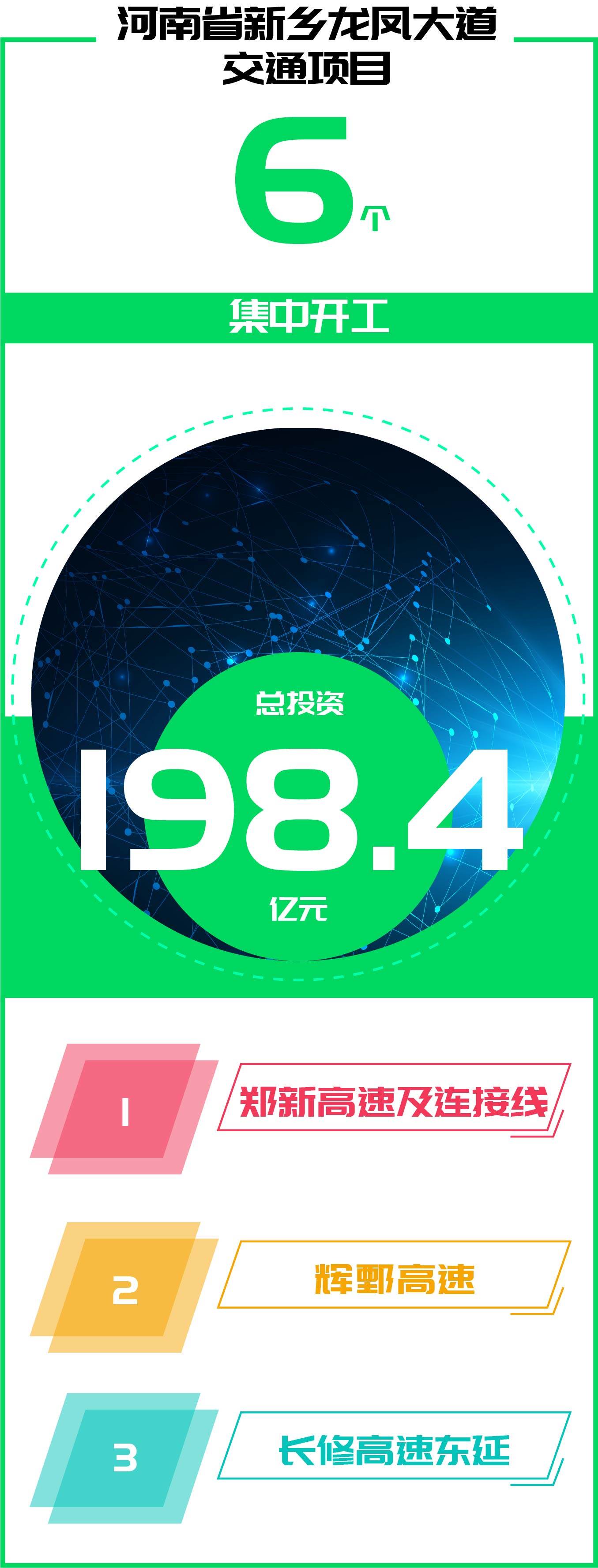 2022年6月25日,河南新乡市交通项目集中开工仪式在平原示范区举行。据介绍,本次共集中开工六个项目,总投资约198.4亿元。其中,包括高速公路项目三个,分别是郑新高速及连接线、辉鄄高速、长修高速东延三个项目,是新乡市首次参照高速公路“13445”模式自主实施、自主推进的高速公路项目。