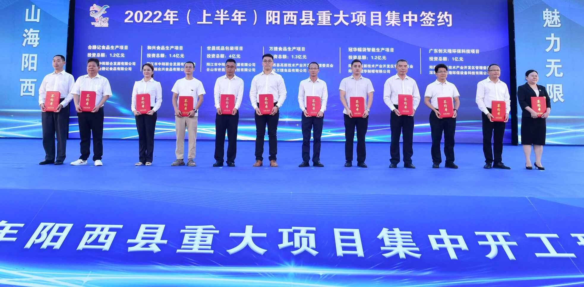 2022年6月27日,广东省阳江市阳西县重大项目集中开工现场会在阳西一中新校区举行,62个项目集中签约、动工和竣工,总投资达514.68亿元,全面吹响新一轮发展冲锋号。