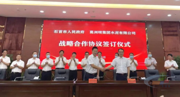近日,中国能建葛洲坝水泥公司与湖北石首市人民政府签订绿色建材产业园项目战略合作协议,公司总经理、党委副书记、董事杨丹与石首市委书记王敏见证签约并座谈交流。