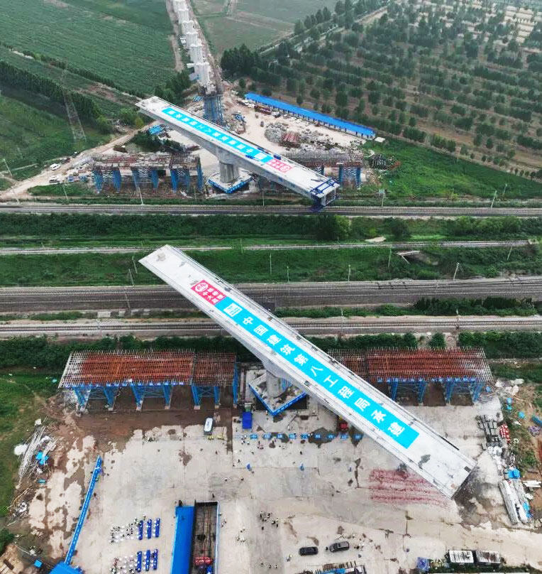 2022年6月27日,中建八局承建的济郑高铁茌平特大桥跨京九、邯济铁路(72+128+72)m转体连续梁转体施工圆满完成,这也是济郑高铁山东段最大的连续梁转体桥。下一步,将进行架梁和无砟轨道施工。