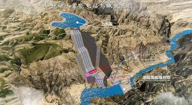 新疆和静抽水蓄能电站是国家抽水蓄能中长期发展规划十四五重点实施项目,该电站位于巴州和静县东南约83km处。枢纽工程由上水库、下水库、输水系统、地下厂房及开关站等组成,电站距高比2.61。上水库最大坝高63.0m,调节库容1067万m3。下水库与滚哈布奇勒水电站共用。电站初选装机容量2100MW,初拟额定水头636m。电站建成后将供电新疆电网并主要服务于新能源消纳,初估可与总规模8000MW的光伏电站配套运行。滚哈布奇勒水电站是开都河水电规划中的第四级电站,枢纽工程由大坝、溢洪洞、泄洪洞和引水发电系统组成。水电站水库总库容1.097亿m3,最大坝高124m,初选装机容量257MW,设计年均发电量9.64亿kWh。