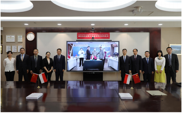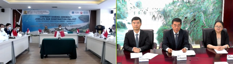 The project signing ceremony was held in Indonesia and Beijing via video link. Ji Xiaojun, the general representative of CAMCE Indonesia, and Mr. Muhammadreza, the representative of the project owner, signed the contract respectively. Garrott, Director of the Water Resources Department of the Ministry of Public Works and Housing of Indonesia, and Li Haixin, Deputy Secretary of the Party Committee and General Manager of CAMCE, witnessed the signing of the project.