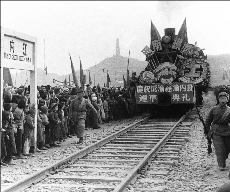1952年7月1日,夏日的山城艳阳高照,一大早,人们就从四面八方汇集到重庆站,见证成渝铁路通车剪彩仪式。