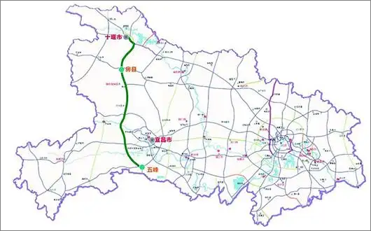 The starting point of the project route is located in Xiakou Town, Xingshan County. It intersects with Shanghai-Chengdu Expressway at about 2.3 kilometers west of Xingshan Interchange of Shanghai-Chengdu Expressway. A hub of Pingyikou is set up to connect with the Xingshan section of Shiyi Expressway to the north. The route goes southwest, passing through Baishuya and Wangjiaqiao, connecting Shuitianba at the north side of Shuitianba Township, passing through the west side of Shuitianba Township, crossing the Yangtze River at the east side of Xietan Township to the east side of Shazhenxi Township Set up Shazhen Creek Interconnection, cross the Tongzhuang River at Zhoujiaba, set up Guojiaba Interconnection via Shangheping to Hujiawan, the route passes through Baiyang Mountain, crosses the Xigou River, and ends at Tianjia on the west side of Jiuwanxi Town. Jiuwan River is set up in Ping, and Yanglin Bridge is set up in Xuetangping on the east side of Yanglinqiao Town. Cross the Yiwan Railway on Wuchangping, and cross the Shanghai-Chongqing Expressway about 5 kilometers west of the existing Hejiaping Interchange.