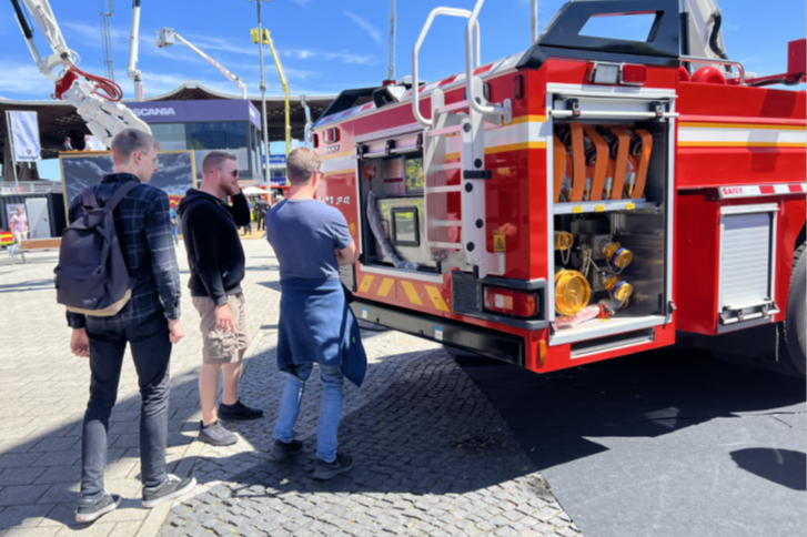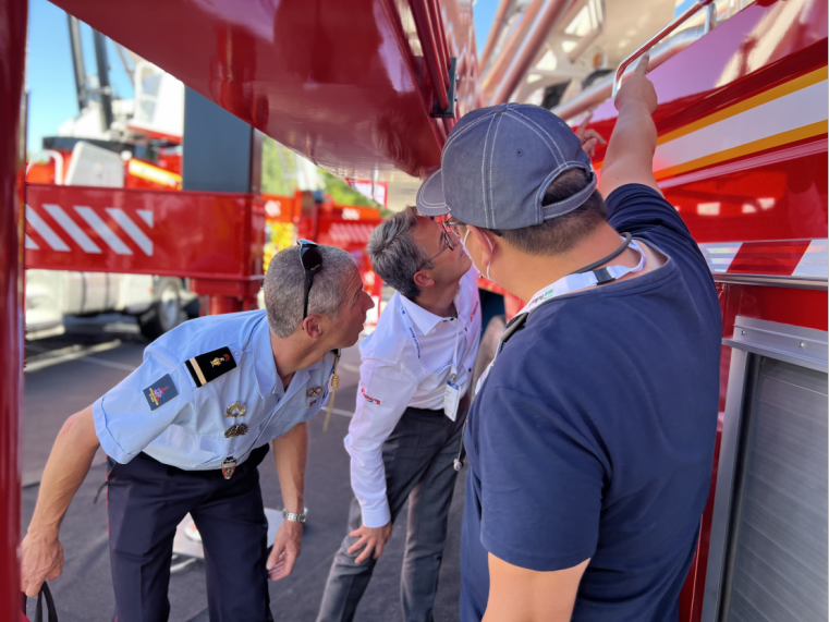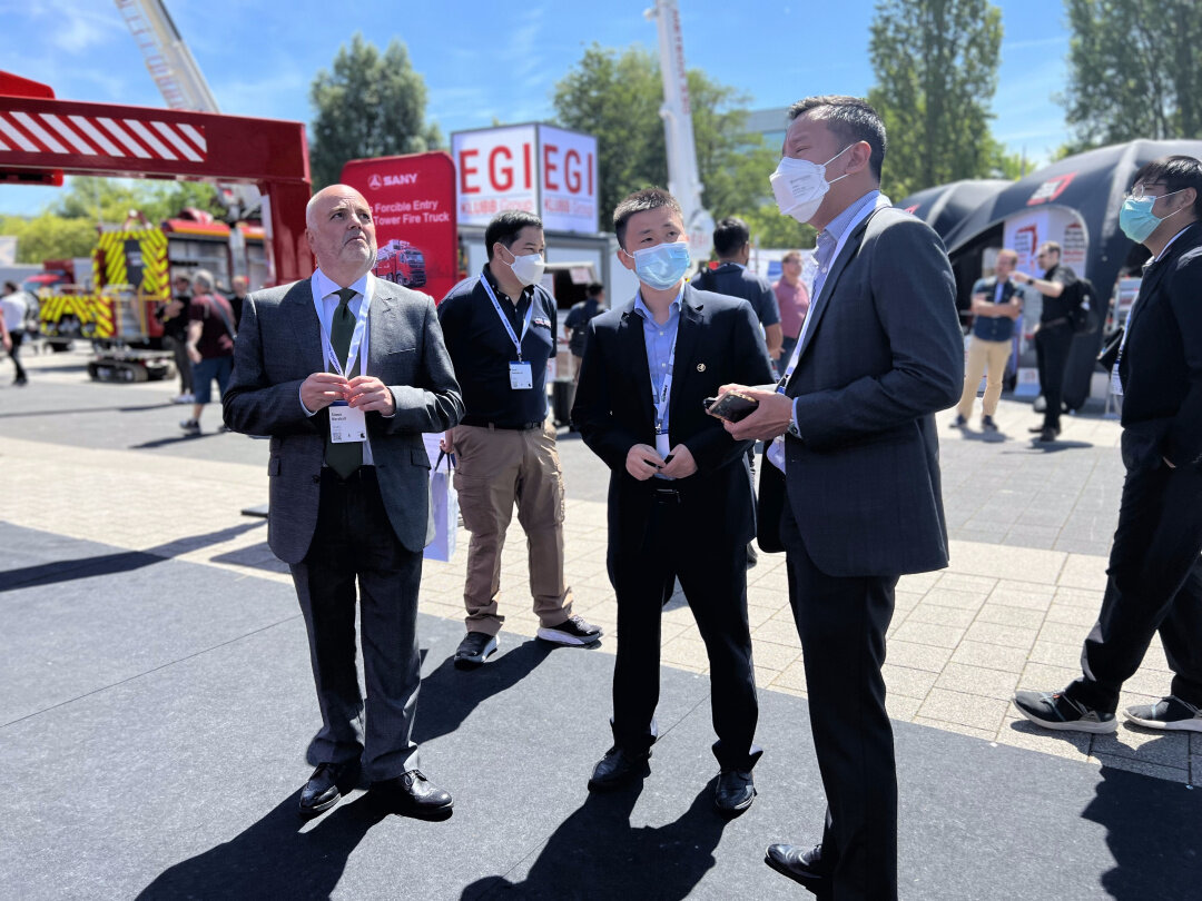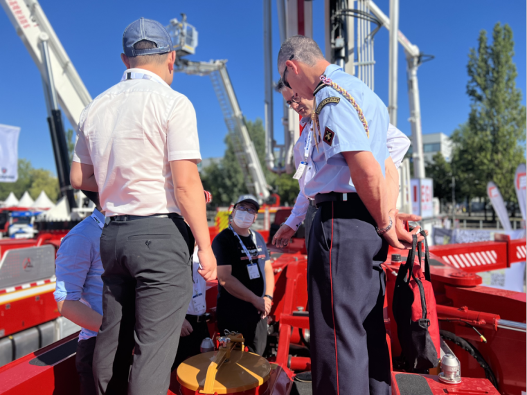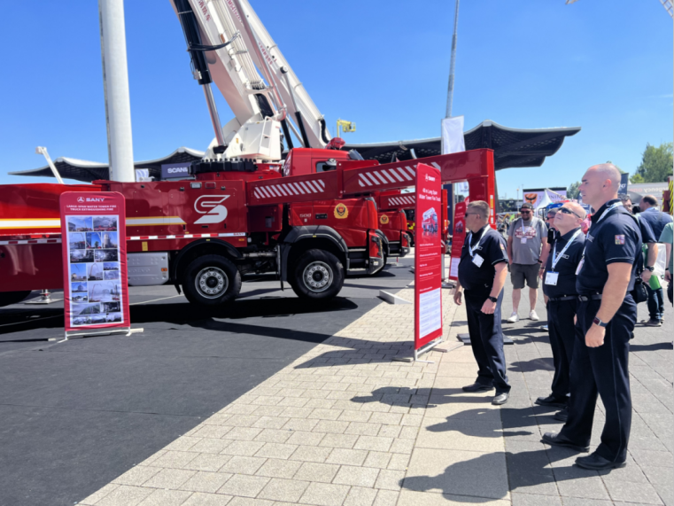 从展会开幕首日起,三一重工精心打造的451㎡户外展区便是参观大热门。48米大跨度举高喷射消防车和28米强力破拆举高喷射消防车的国际首秀,吸引了来自德国、瑞典和法国等众多国家地区客户的强势围观。