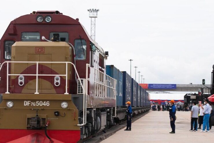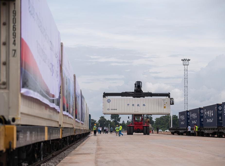 7月1日,中老铁路万象南站换装场正式建成投用,首批跨境集装箱货物在此完成标准轨与米轨间换装后,驶向泰国林查班港。这标志着中老泰铁路实现互联互通,陆海联运国际物流通道更加便捷畅通。