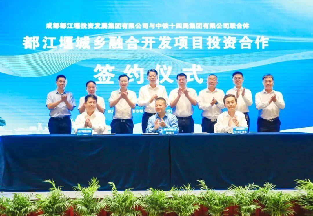 Under the joint witness of Zhang Yadan, Deputy Secretary of the Dujiangyan Municipal Party Committee and Mayor, Wu Yankun, Secretary of the Party Committee and Chairman of China Railway 14th Bureau, Qiao Jiwei, Partner of Chengdu Dujiangyan Guoshan Enterprise Management Partnership Fund and other parties, Deputy General Manager and President of China Railway 14th Bureau Accountant Xiong Hui, Deputy Secretary of the Party Committee and General Manager of Chengdu Dujiangyan Investment Development Group Co., Ltd. Zhou Fan, and Executive Partner of Chengdu Dujiangyan Guoshan Enterprise Management Partnership Fund Marriott signed the Dujiangyan Urban-Rural Integrated Development Project Investment Cooperation Agreement.