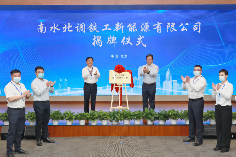 揭牌仪式以视频会议的形式举行,在中国南水北调集团党组书记、董事长蒋旭光,中国中铁党委书记、董事长陈云,中水北方党委书记、董事长胡玉强等领导见证下,在中国南水北调集团党组成员、副总经理孙志禹主持下,集团公司党委书记、董事长张建国和中国南水北调集团新能源投资有限公司党委委员、纪委书记卢健,共同为南水北调铁工新能源有限公司揭牌。