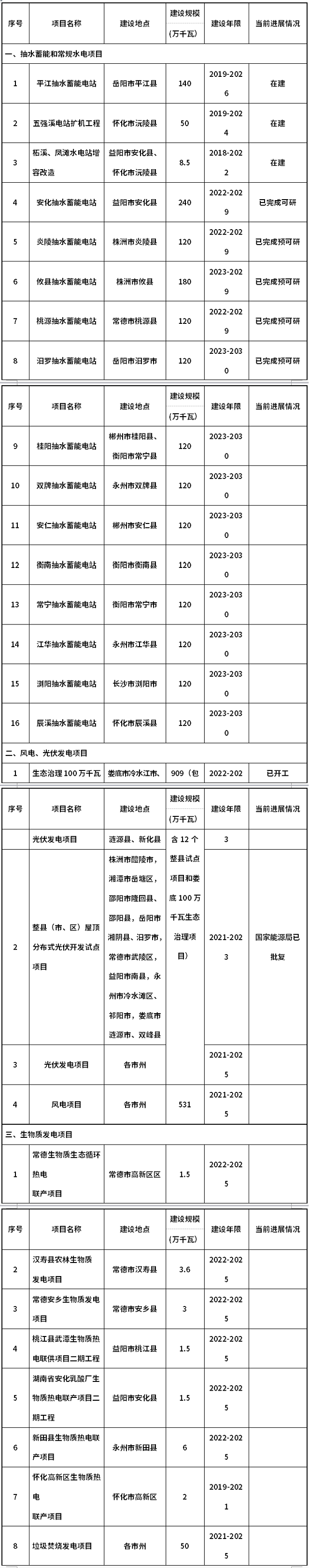 附:湖南省“十四五”期间可再生能源重大、试点示范项目一览表