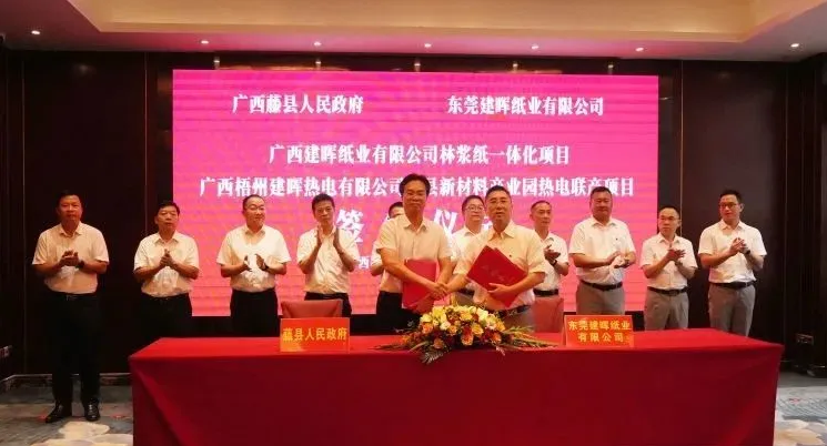 2022年6月30日,广西藤县与东莞建晖纸业有限公司在梧州市举行广西建晖纸业有限公司林浆纸一体化项目及广西梧州建晖纸业有限公司藤县新材料产业园热电联产项目签约仪式,标志着这两个项目将全面启动建设。此次政企签约合作,不仅树立藤县高水平企业的一个新标杆,也将有力推动藤县经济结构调整、乡村振兴战略实现新的跨越式发展。