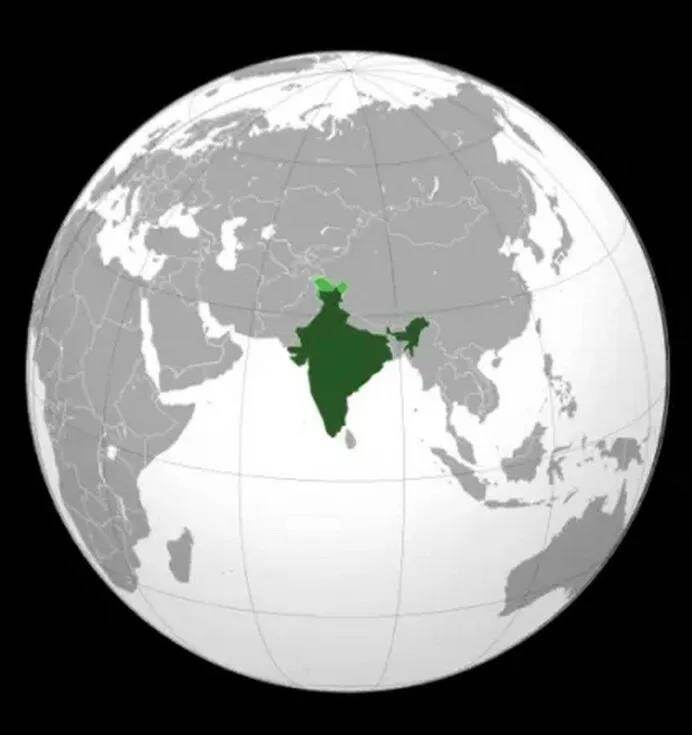 图中绿色为南亚半岛,即通常所说的印度,顶部的浅绿色为印度河流域。