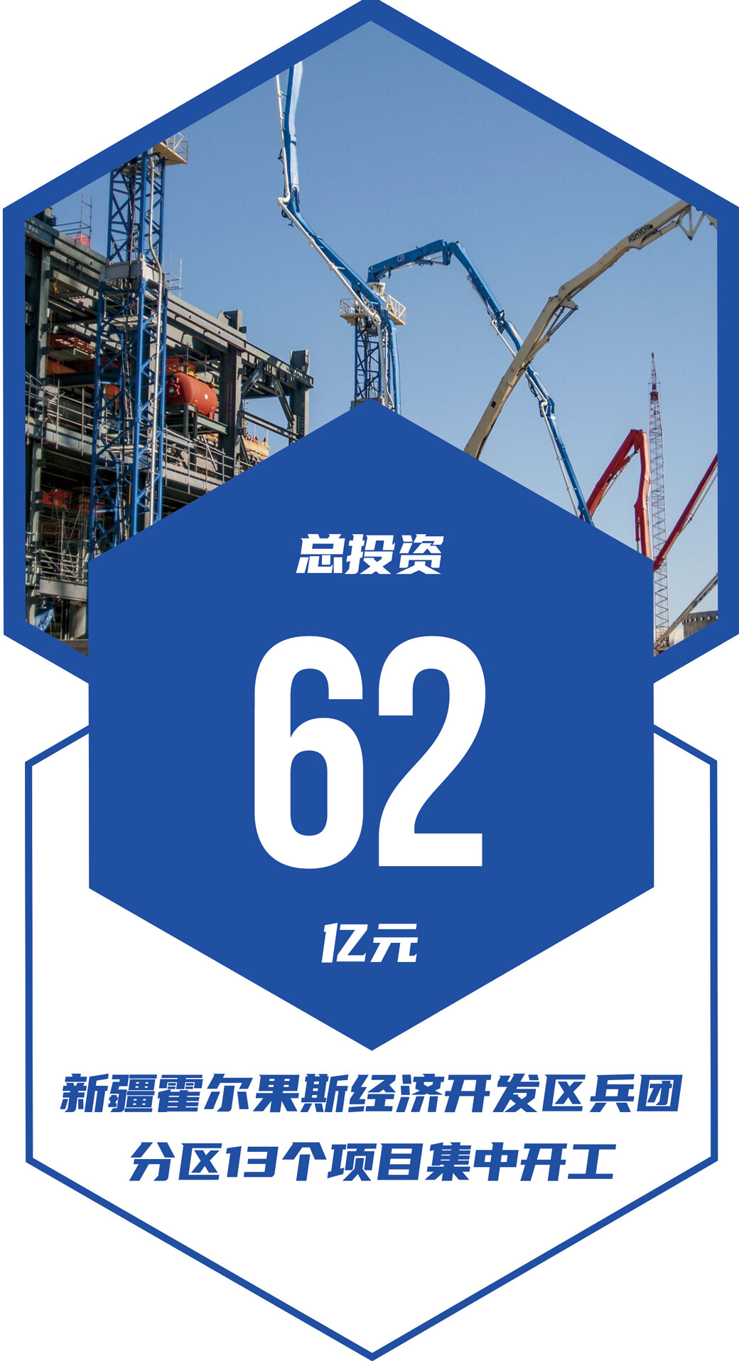 近日,国家级霍尔果斯经济开发区兵团分区13个项目举行集中开工仪式,总投资62亿元。