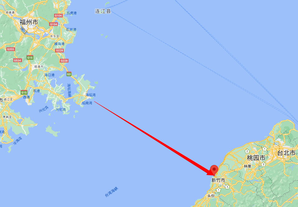 大陆与台湾最近的距离是68海里(约126公里),大陆端是福建福州的平潭岛,台湾端是新竹的南寮渔港。目前两地最快的海上船程约2个半小时。