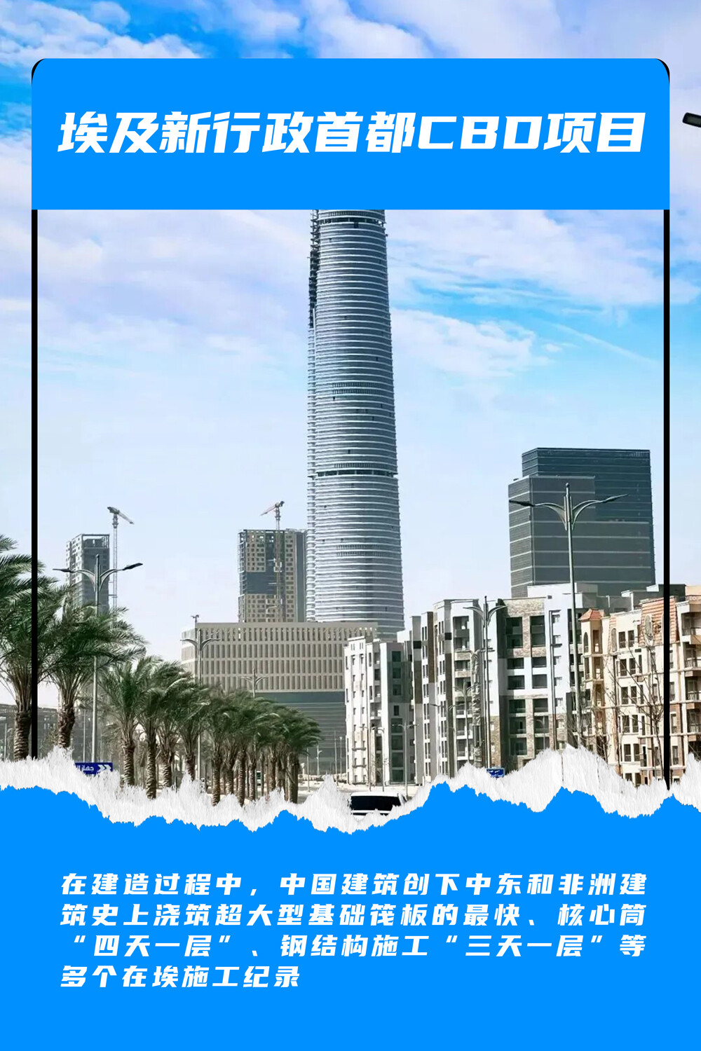 埃及新行政首都CBD项目占地面积约50.5万平方米,共20栋单体建筑,包括10栋高层商业办公楼、5栋高层公寓、4栋高档酒店以及385.8米的“非洲第一高”标志塔,是迄今为止中央企业在埃及的最大项目。建成后埃及将真正拥有世界级的中央商务区,并带动埃及苏伊士运河经济带和红海经济带的开发。