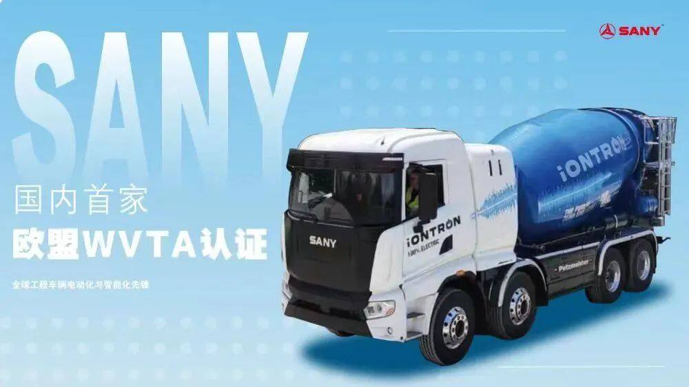 近日,三一电动搅拌车首款国际专用车型——iONTRON408P成功通过欧盟整车型式认证并上牌,成为国内第一款获得欧洲市场准入资格的电动工程车产品。