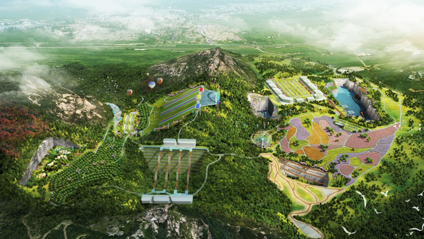 The project area is located in Zhangxing Town, Zhaoyuan City, Shandong Province, about 200 meters away from Dalan Village in the west, 1 kilometer away from provincial highway S608 and S19 Longqing Expressway, and 4.8 kilometers away from Luanjiahe Reservoir in the west. The project management area is about 1,800 meters long from east to west and 1,100 meters long from north to south, with a total area of about 1.84 square kilometers. The main construction tasks of the project are ecological restoration and comprehensive treatment of abandoned mines, including earthwork works, road works, blocking warning works, masonry works, soil-covering greening works, maintenance works, etc. High and steep slopes, residual walls and exposed industrial sites are to be repaired and treated. The construction period of the project is 2 years.