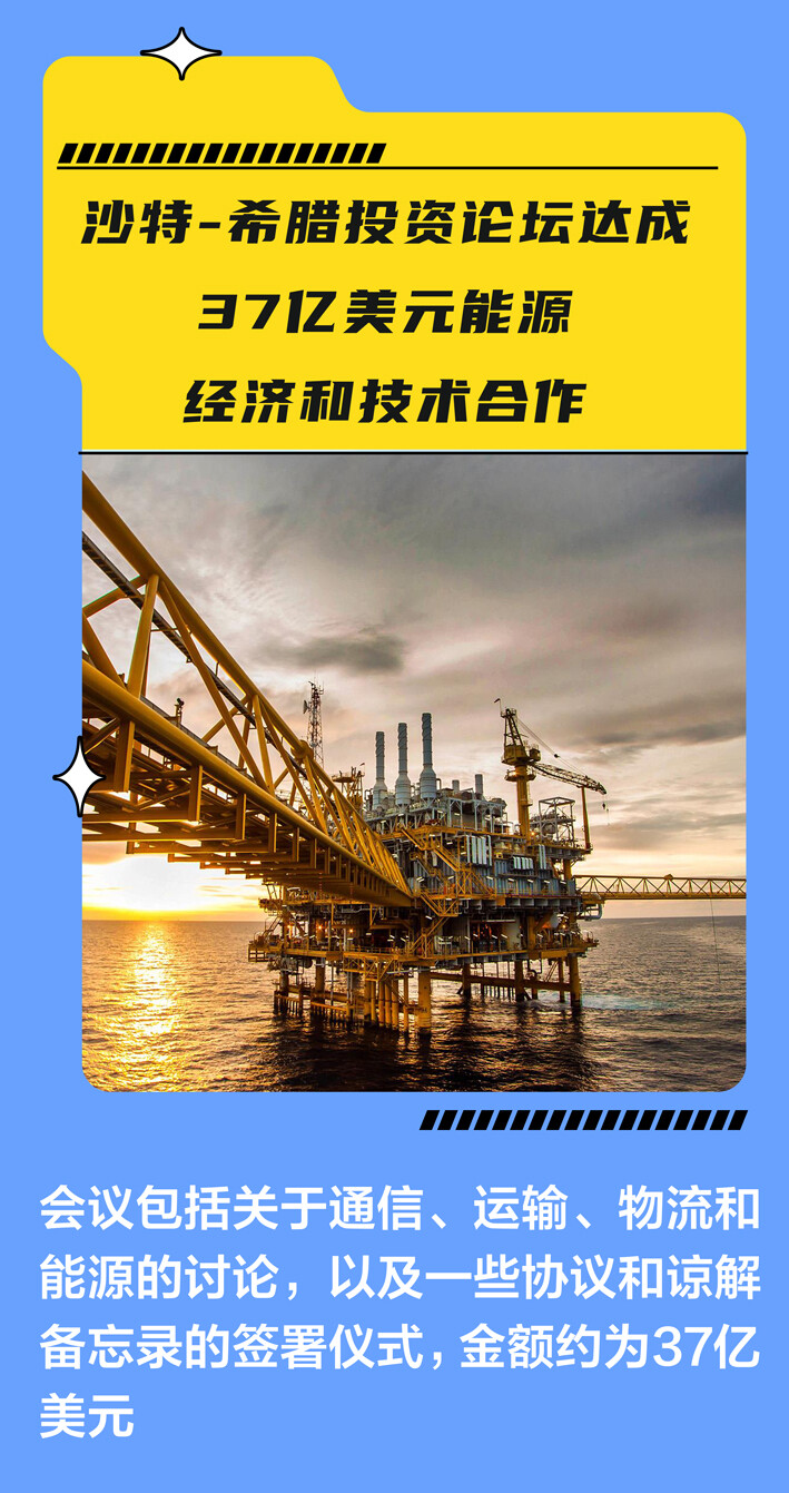 沙特阿拉伯和希腊的部长与主要私营部门官员齐聚一堂,讨论加强两国经济和投资合作的方法。会议包括关于通信、运输、物流和能源的讨论,以及一些协议和谅解备忘录的签署仪式,金额约为37亿美元。