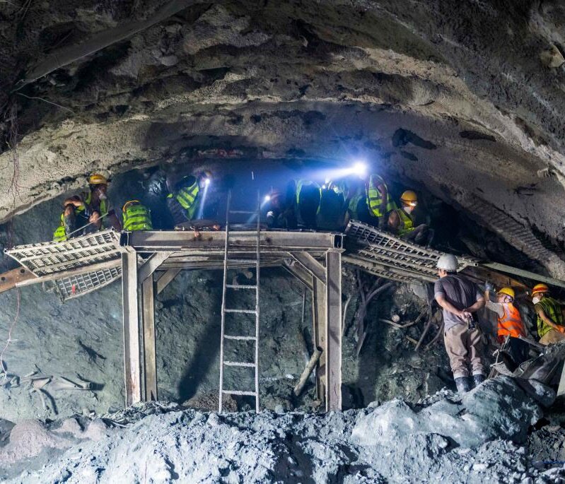 哈巴雪山隧道开工建设以来,全隧安排3个辅助坑道进行开挖,后因施工艰难,先后将与正洞连接的横通道增加到12个,最多时有1200多名工人昼夜施工。
