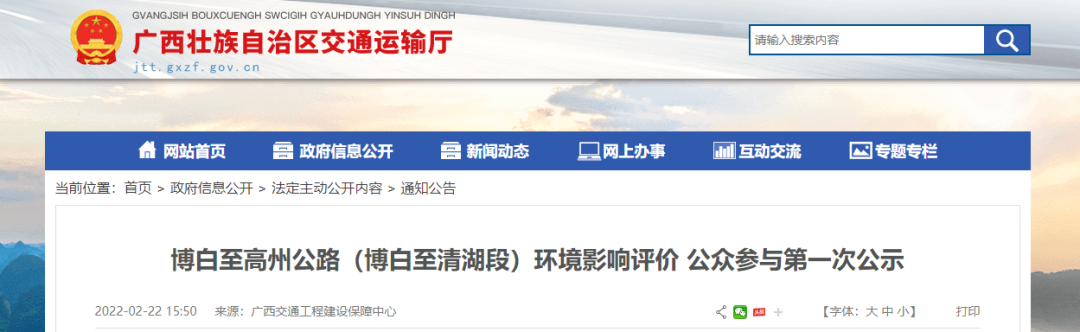 项目进展:2022年2月2日,博白至高州公路博白至清湖段环境影响评价第一次公示。