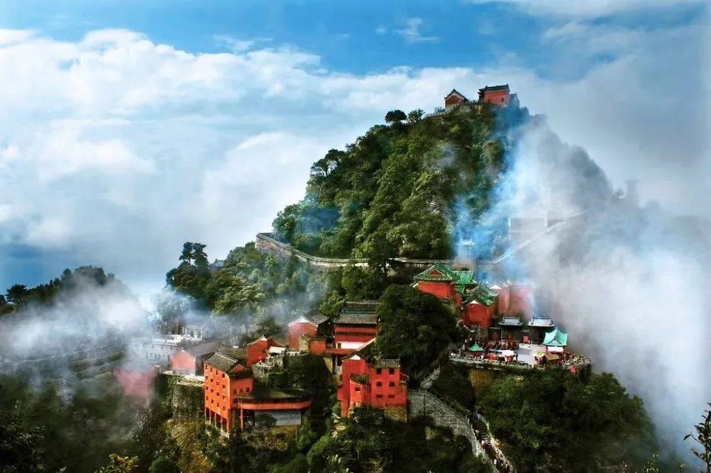 武当山古建筑群:湖北省十堰市武当山麓,道教建筑可追溯到七世纪,对中国宗教及民间建筑艺术有深远影响,集中体现元、明、清三代的建筑和艺术成就,代表了中国近千年最高的艺术和建筑成就,1994年12月14日入选世界文化遗产。