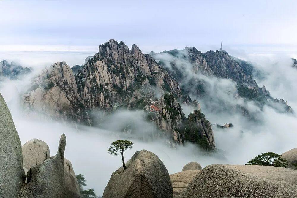 黄山:安徽省南部黄山市境内,被誉为“震旦国中第一奇山”,以其壮丽的景色、花岗岩上的奇松,云海中的怪石而著称,自公元8世纪左右唐代起,在中国文学史有重要作用,创造了丰富的人文景观,1990年12月12日入选文化和自然混合遗产。