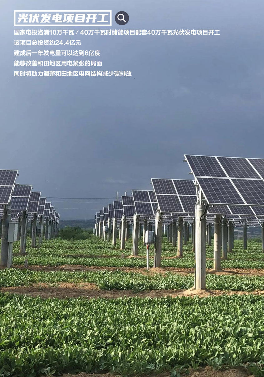 国家电投洛浦10万千瓦/40万千瓦时储能项目配套40万千瓦光伏发电项目总投资约24.4亿元,将于2022年8月开工建设,计划年底投运。项目建成后,预计年发电量6亿千瓦时,每年可节约标准煤约22.7万吨,可减少二氧化碳排放量约58.5万吨、氮氧化物排放量约0.39万吨、二氧化硫排放量约0.13万吨。