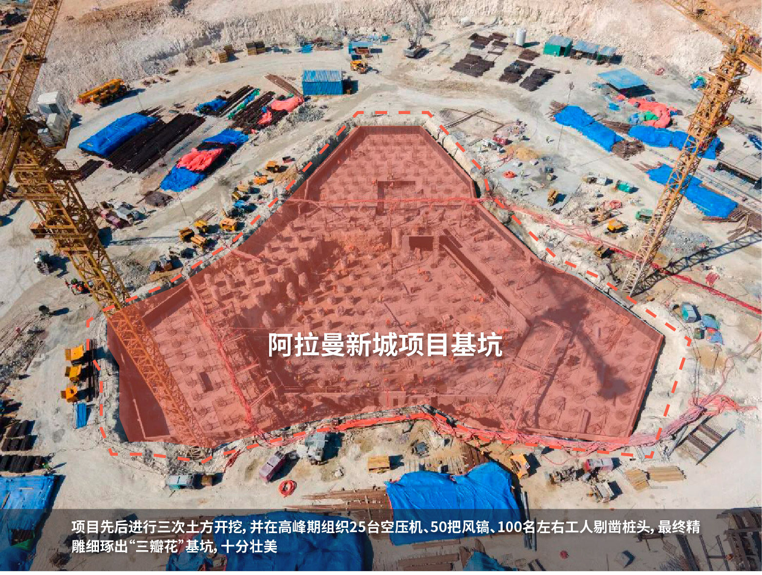 该项目由中建埃及承建,包括设计和建造1座高度约300米的标志塔、4栋超高层住宅及商业配套和市政景观工程,建筑总面积约109万平方米。建成后将成为全球最高的十栋住宅楼之一,是中国建筑在海外面积最大的单体建筑,也是非洲最高的全钢筋混凝土超高层住宅。