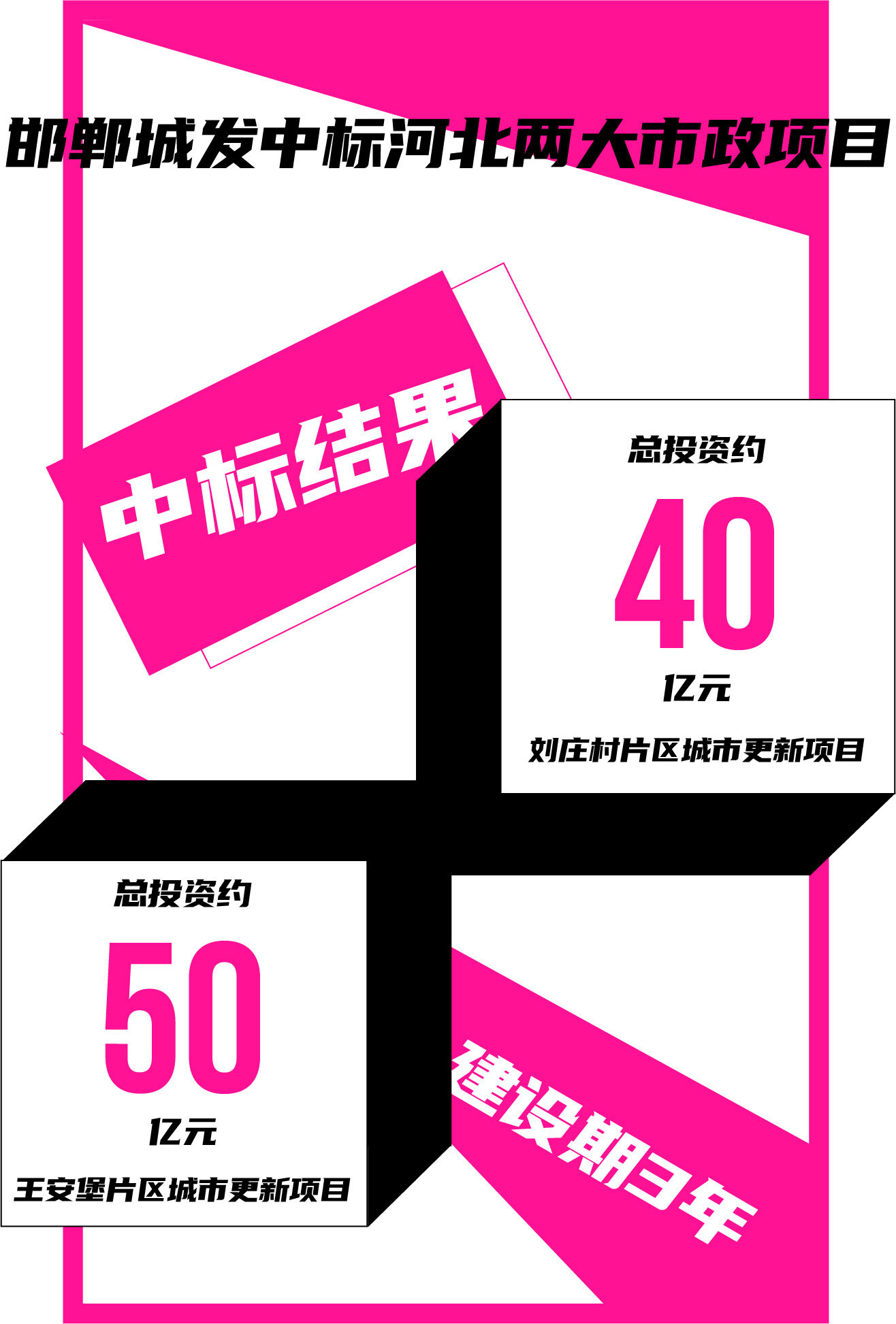 近日,邯郸城市发展投资集团有限公司中标邯郸市刘庄村片区城市更新项目以及邯郸市王安堡片区城市更新项目,行业所属市政,项目总投资90亿元。