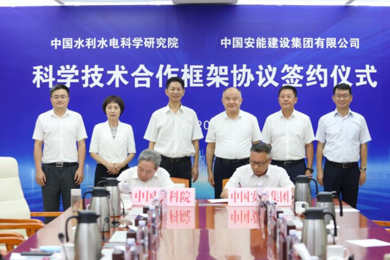 会谈后,在周国平、匡尚富等领导的共同见证下,中国安能集团党委常委、副总经理吴汉明与中国水科院副院长汪小刚代表双方签署科学技术合作框架协议。