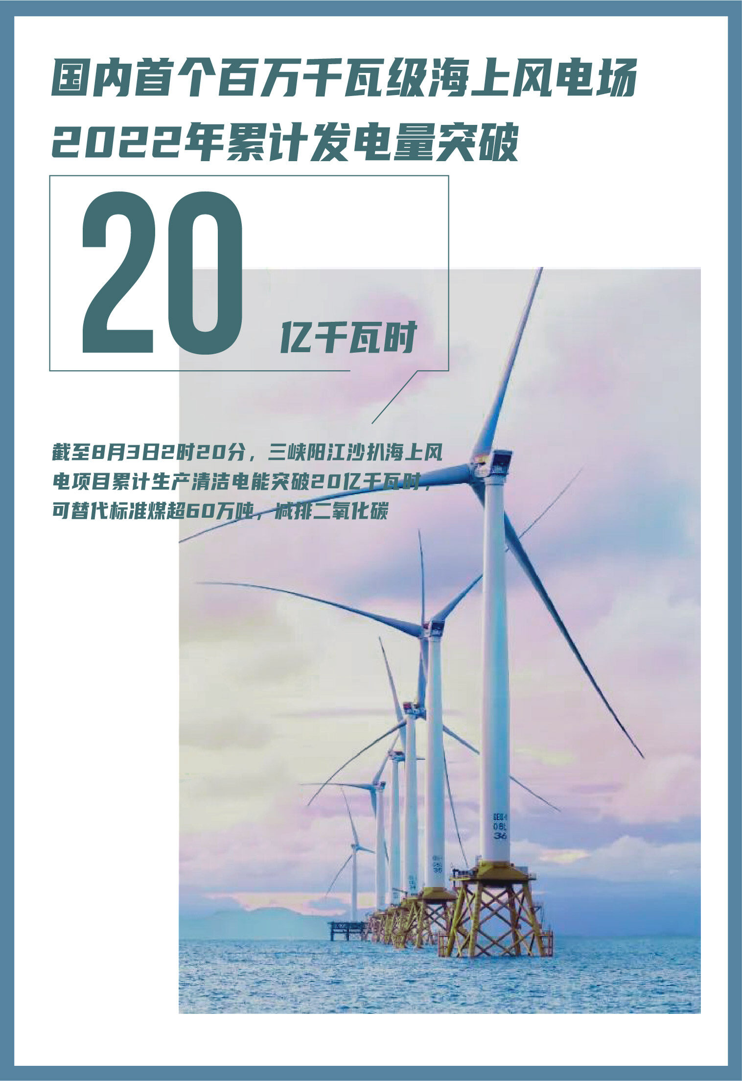 截至2022年8月3日2时20分,中国首个百万千瓦级海上风电场——三峡阳江沙扒海上风电项目2022年累计生产清洁电能突破20亿千瓦时。