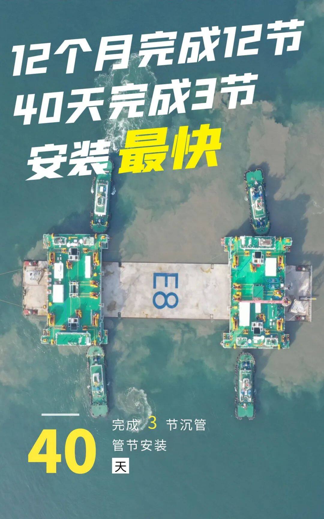 20个月完成18个航母级沉管精准安装任务,创造了世界跨海沉管隧道建设史上安装速度最快、用时最短的新纪录,书写沉管隧道建设领域的“中国速度”和“中国效率”。
