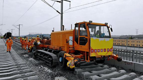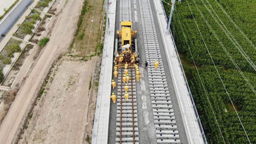 2022年8月4日上午9时,随着铺轨车缓缓向前,钢轨沿着车辆前进的方向自中卫南站至香山隧道方向不断铺展,银川至兰州高铁中兰段宁夏境内铺轨施工正式进入双向铺轨阶段。
