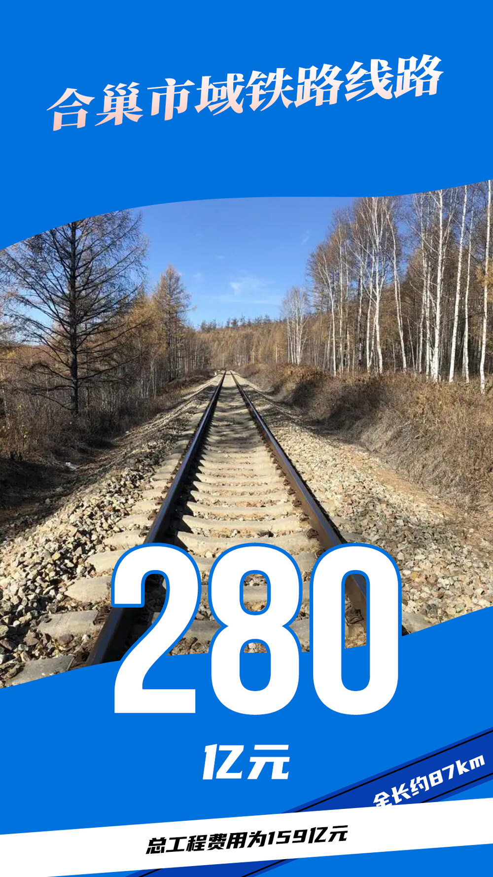 合巢市域铁路线路全长约87km,在长临河镇设车辆段,在中垾镇设停车场,投资总估算约280亿元,其中总工程费用为159亿元。