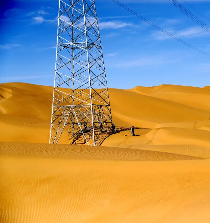艾合买提·托乎提和同事横穿大漠是为了巡视220千伏台塔线。这条线路是中国第一条穿越塔克拉玛干沙漠的输电线路,于2010年建成,线路全长331千米,是保障且末、若羌、塔中油田等十几万户客户生产生活的“电力大动脉”。