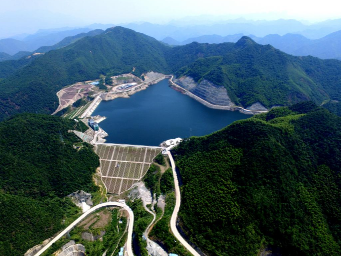 藻渡水库正常蓄水位375m,设计洪水位(P=1%)376m,校核洪水位(P=0.05%)377.53m,防洪高水位376m,汛期限制水位366.8m,死水位342m。藻渡水库总库容1.99 亿m3,正常蓄水位相应库容1.83亿m3,调节库容 1.35亿m3,死库容0.48亿m3,防洪库容4975万m3。电站装机12MW,年发电量4494万 kW.h,装机利用小时数3475h。